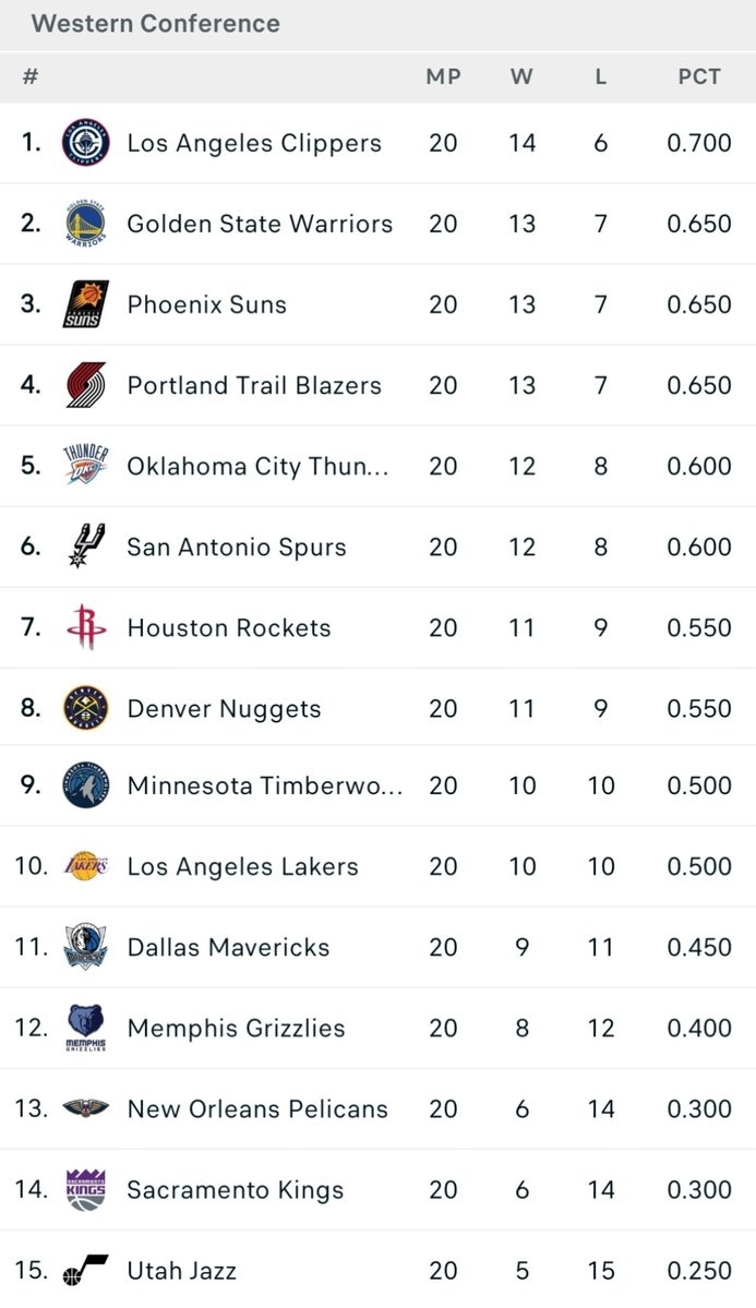 开云入口-西部球队近20场战绩排行:快船14-6昂扬北伐 勇士&太阳&开拓者第2
